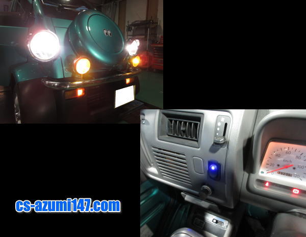 ヘッドライトは、シールドビームでしたので当店で在庫のあったハロゲンの灯体に変更してLED化しています。