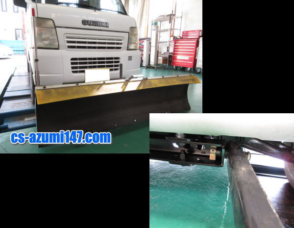 先日、スズキキャリーへスノープラウを装着させていただきました。