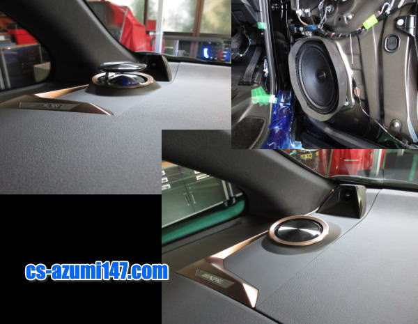 ツィーターは、ミラー裏へ埋込み加工にて装着です♪