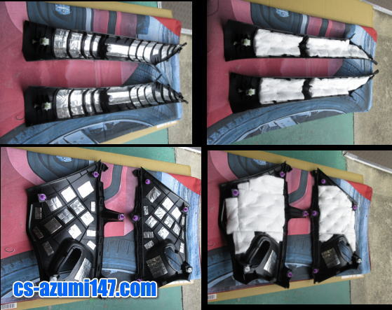 ボディ側とトリム側を制振して、吸音材を貼り込みしました。