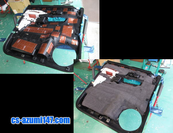 ドアの内張も同様に制振と吸音/遮音施工をさせていただきました。