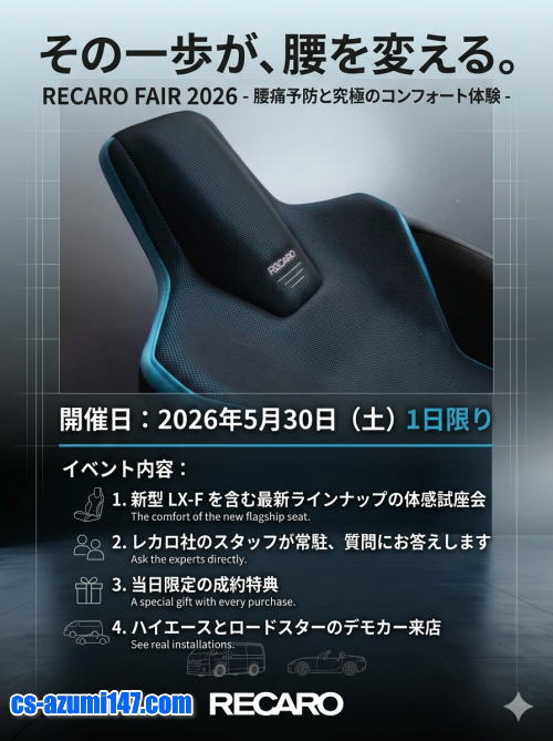 恒例となりましたRECAROシートの1dayフェアを開催します♪